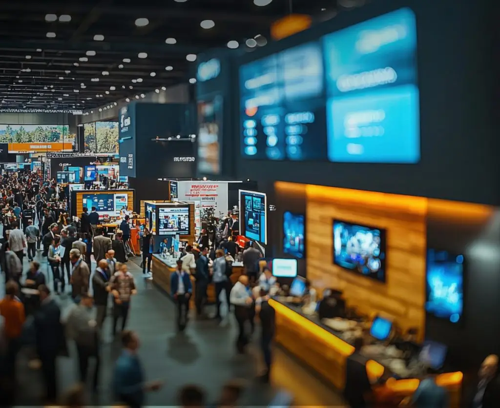 • Go Vertical: Use tall signage and hanging displays to stand out in expansive halls.